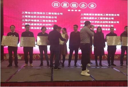喜讯!奥佳防水荣获上海市化学建材行业质量诚信四星级企业!